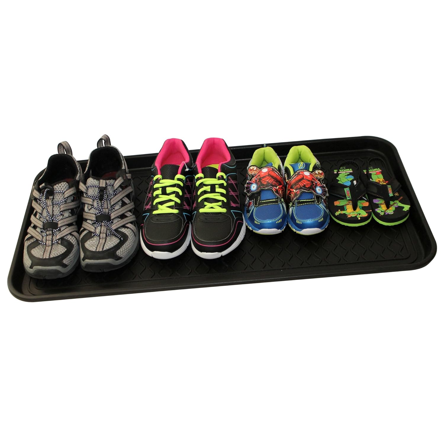 We just got two adorable kittens, and this product was a great buy. The kittens are always making messes when they eat! While playing they have knock over their water bowl in many occasions and although we had a mat before it did not contain the liquid so there was always a mess. This multipurpose tray it’s a catch all, not only for wet accident, but also for any kibble, and this one works great! It’s can hold up to four adult sizes boots, so there is a lot of pace for a water bowl and two food bowls. The lip around is tall enough and keeps everything contain. It’s super easy to clean and it also comes with rubber pads to attach to the bottom. Very pleased with these trays!