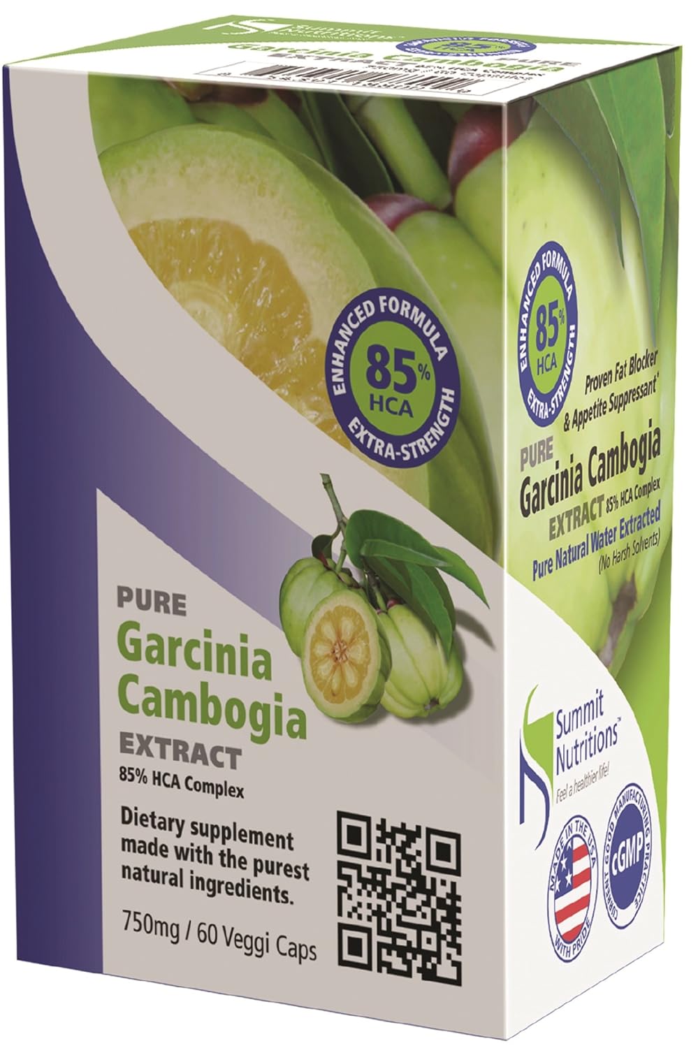 85% HCA MAXIMUM STRENGHT FORMULA – Summit Nutritions Garcinia Cambogia has more than 85% HCA complex which includes real and legitimate (Third party Tested in US according to standardization of USP/NF) approximate 72% (-) HCA and its in stabilized form with complex of natural lactones of HCA, Citric Acid and Mineral of Natural calcium